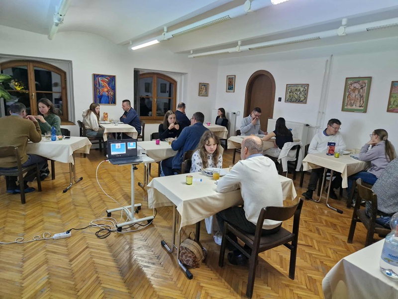 15 házaspár gyűlt össze, hogy a Pécsről érkező Abai Tibor és felesége, Zsuzska „Otthonunk légköre” című előadását meghallgassák. Az este első részében sok értékes gondolat elhangzott arról, hogy mit is jelent számunkra az Otthon, hogyan lehet a megélt áldozatokat átkeretezni és Istennek felajánlott dologgá tenni. Hogyan szervezhetjük rohanó életünket úgy, hogy a „modern” ember számára legértékesebből, az idejéből tudjon adni szeretteinek, a környezetében élőknek.